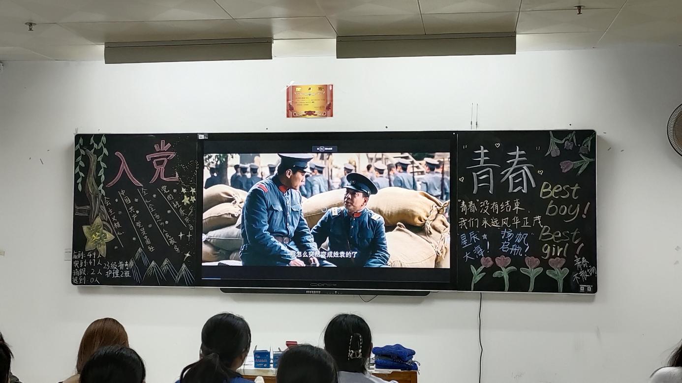 通过此次观影活动,使同学们深刻明白了,作为新时代青年,我们需要重新走进历史,重新在历史中汲取力量源泉,激励自己,找准自己的人生坐标,寻找自己的青春动力。中国共产党发展和壮大的历史,就是一部一代代人前仆后继、英勇斗争的历史。我们要万分珍惜今天的胜利果实,继续努力,完成先辈们未完成的事业。