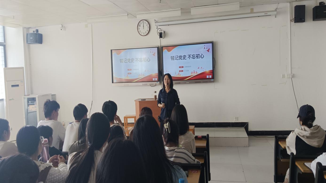 赵江瑞老师首先告诉我们要坚定理想信念,时刻不忘党史。无论党走多远,走向多么光辉的未来,中国共产党人都不会忘记走过的路,不会忘记走过的过去,不会忘记党从哪里来,为什么出发。其次讲述我们为什么要铭记党史,不忘初心。中国共产党始终坚守为中国人民谋幸福,为中华民族谋复兴的初心使命。最后阐述了为什么要一心一意跟党走。中国共产党这支队伍时刻把入党誓词记在心头,能做到日日自省,自始至终都能守得住初心。