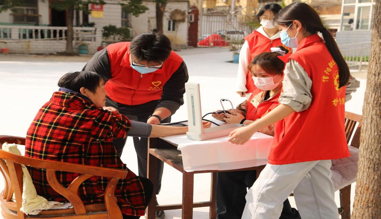 在温暖和煦的春风中,澳门十大信誉网赌大全党总支带领暖冬社团的“红马甲”们来到信阳市浉河区五星街道河南路社区宝石老年公寓,开展了“爱心护理暖冬行 养老义诊护安康”志愿服务活动,将党的关怀化作温暖春风,在社区养老院奏响了一曲动人的“健康守护交响乐”。