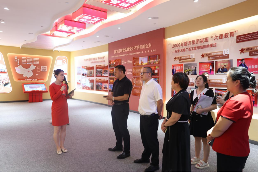 在郑州圆方集团,一行人参观了非公党建教育基地、圆方创业纪念馆、党建纪念馆、圆方星光大道、中国微党史馆、“抗疫情、战新冠”展馆,并详细参观了雪绒花职业培训学校的全景家庭模拟实操室、中西餐营养实操室、养老护理实操室、早教实操室、母婴护理实操室等专业实操设施。