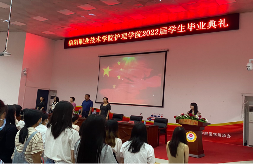 典礼开始,全体师生起立,奏唱国歌。现场庄严肃穆,铿锵有力的歌声振奋着每个学子的心。国歌奏完,优秀毕业生代表徐永雪上台发言。首先,她代表2022届全体毕业生向老师们表示衷心的感谢!三年砥砺,执著进取心无悔,十载传承,笃行超越共扬帆。感谢母校的领导和老师们的鼓励和教育,才使2019级澳门十大信誉网赌大全学生拥有优异的成绩,描绘出壮美的人生画卷。大家将用实际行动来报答母校的培养,愿有前程可奔赴,亦有岁月可回首!