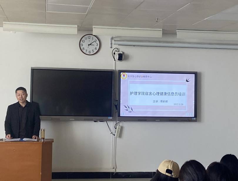 为提高大学生心理健康水平,营造良好安全的宿舍氛围,澳门十大信誉网赌大全于3月29日下午在西501开展心理健康信息员培训会。本次培训主讲老师为大学生心理健康中心易朝晖主任,21级全体宿舍心理信息员参加此次培训。