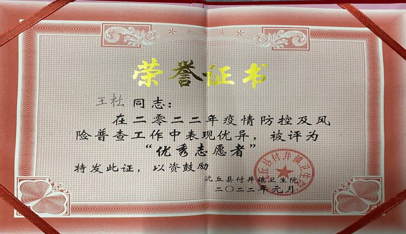 志愿感悟:在疫情防控小组中,我坚持每天按时到岗值班、把守进口关卡、详细登记出入人员、及时劝散聚集人群,与其他志愿者一同为社区及附近的大街小巷进行消毒工作。在做这些工作时,我积极地向村干部请教问题,以更好地去完成工作,我深刻的记得村干部经常说的一句话:“疫情不散,我们不撤。我相信且坚信,有那么多的志愿者,有那么多勇于奉献的人,这场疫情我们一定可以取得最终的胜利。”
