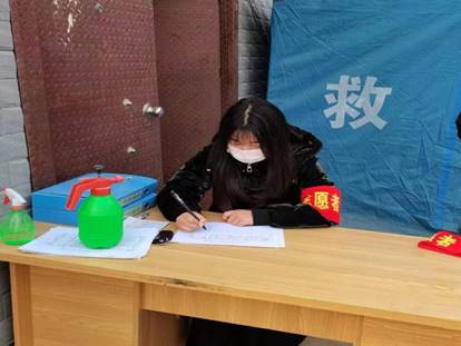 大家好,我是21级普专护理07班的焦姗姗。寒假期间,我在驻马店市泌阳县铜山乡铜峰村委做疫情防控志愿者。在这段时间里,我时常因我是一名志愿者而骄傲。我也看到了我所在的这个社会、这个国家对待疫情的积极态度,疫情防控做得非常到位。我为生活在这样一个安全的国家而感到自豪,同时我也更加感谢那些奔赴在前线的人们,感谢他们的无私奉献。在未来的日子里,我将会继续努力,继续发挥自己的作用,更好的服务社会。