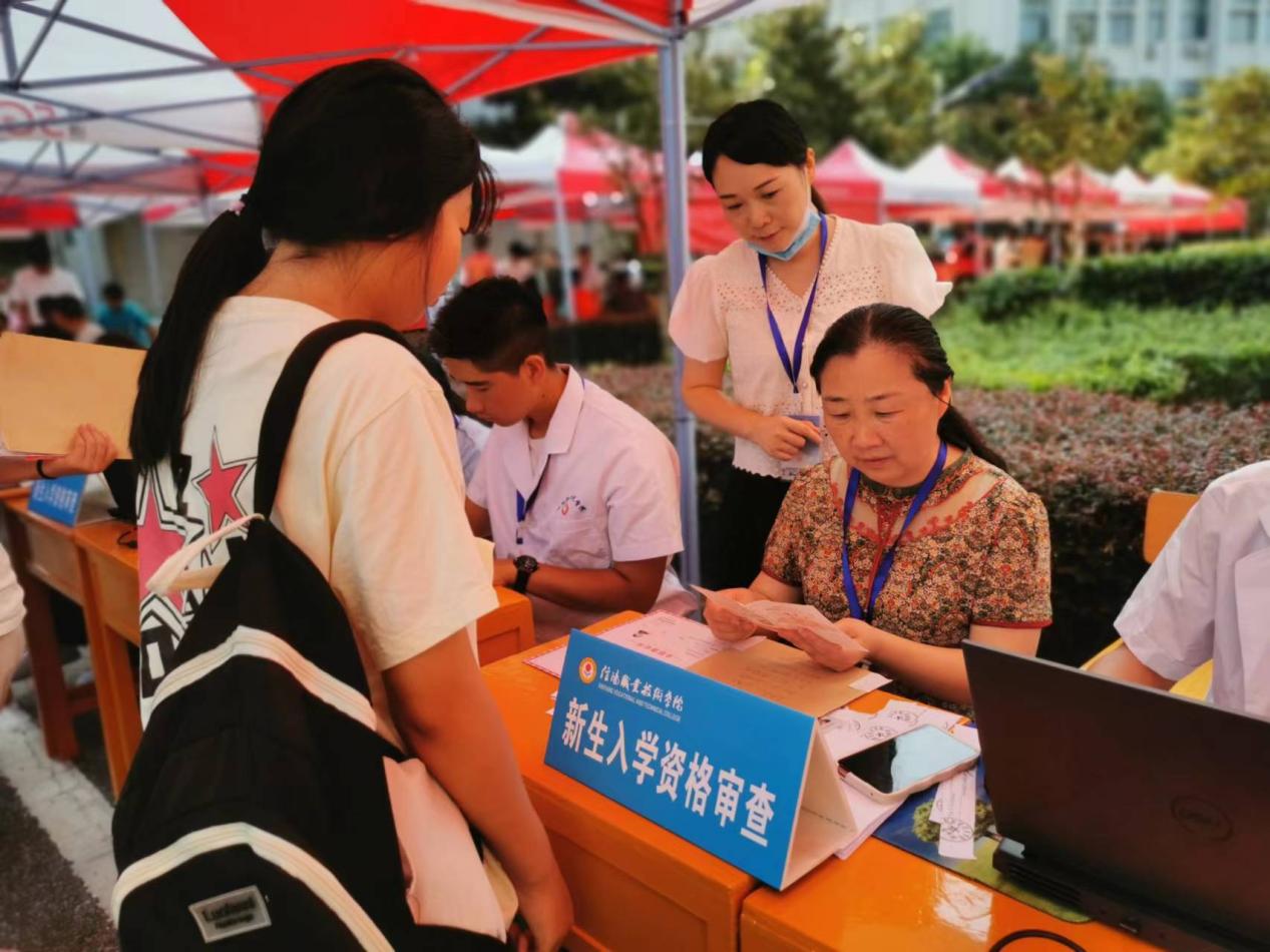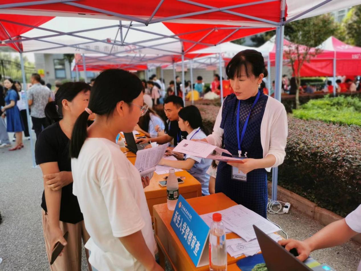 在新生接待点,负责迎新的辅导员和学工领导对照录取信息,认真查看并核对新生的身份证、准考证、录取通知书、收缴新生档案和入学照片,并做好新生信息登记工作,对初审合格的新生,同步登录学校迎新系统,及时更新新生报到情况。