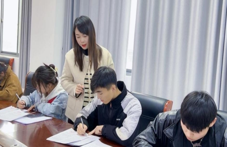 朱晓静副书记在为学生讲解填表要求