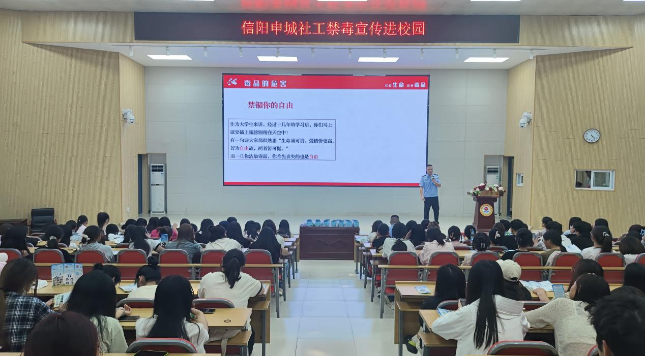 为进一步加大禁毒宣传力度,广泛普及禁毒知识,提高青年学生识毒、防毒、拒毒意识,营造健康无毒的校园环境。2024年6月11日,澳门十大信誉网赌大全联合信阳市强制隔离戒毒所在行知讲堂举行了“健康人生 绿色无毒”禁毒知识讲座。